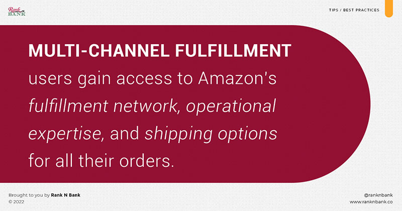 Multi-Channel Fulfillment users gain access to Amazon’s fulfillment network, operational expertise, and shipping options for all their orders, meaning they can offer customers one- and two-day shipping options. Ultimately, the speedy delivery can help gain a competitive advantage.