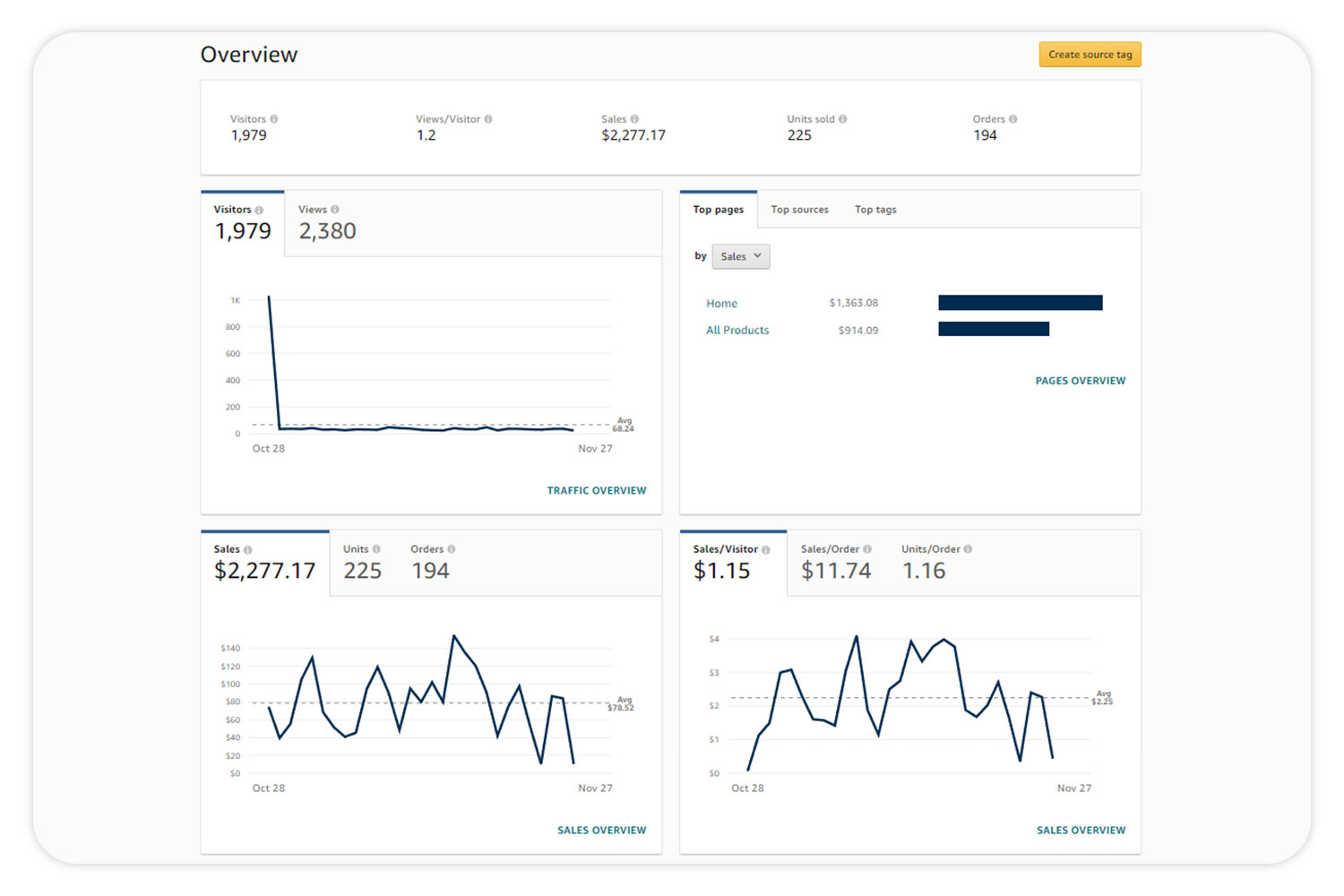 Amazon Stores allows sellers and vendors to set up a free online storefront for their brands. Sellers can experiment with custom layouts and premade templates to create an immersive and rich virtual shopping experience for their customers.